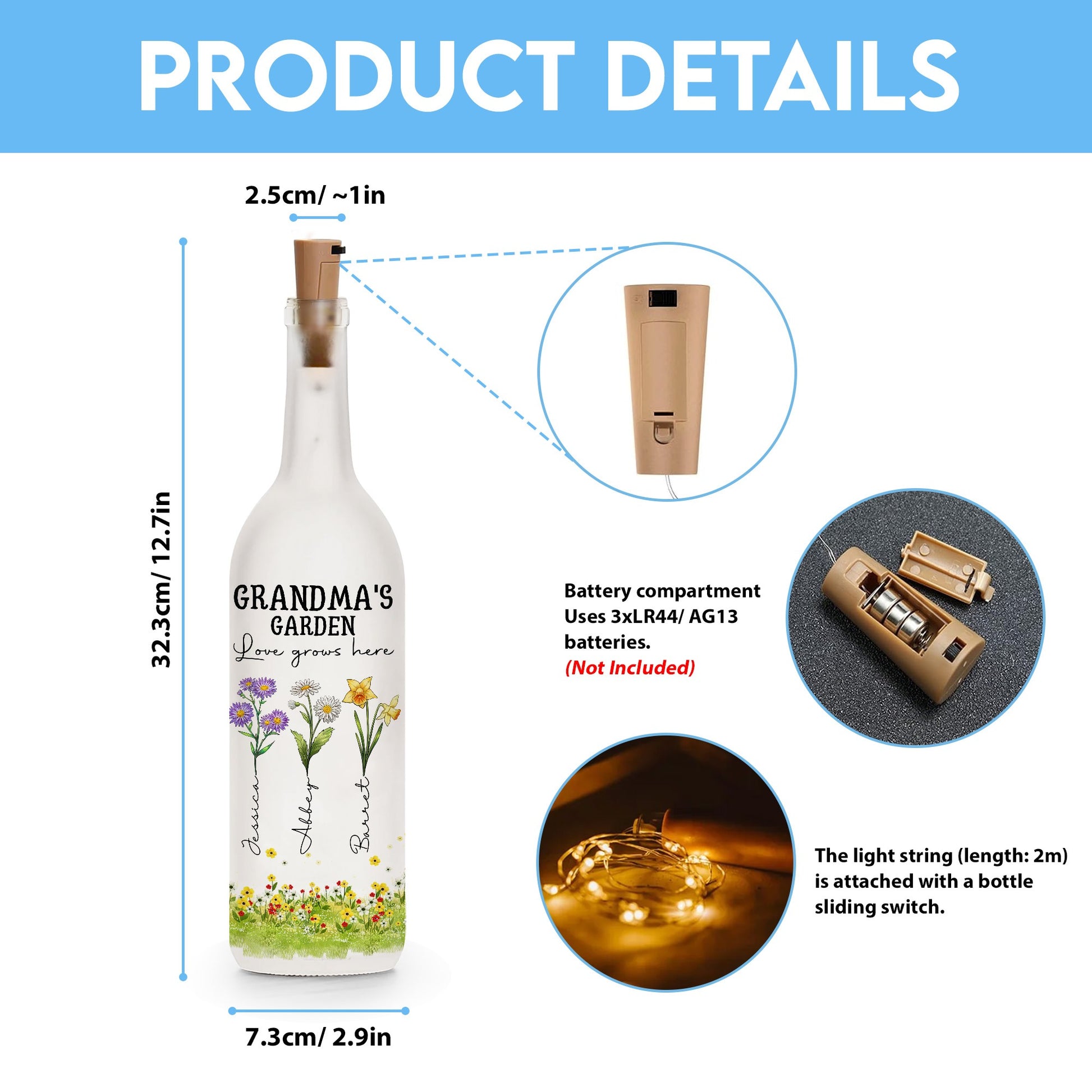 Custom Birth Month Flowers Grandma's Garden Love Grows Here - Personalized Gift For Grandma Bottle Lamp, Grandma’s Garden Bottle Lamp, Birth Flower Bottle Lamp, Gift for Grandma, Mother’s day gift