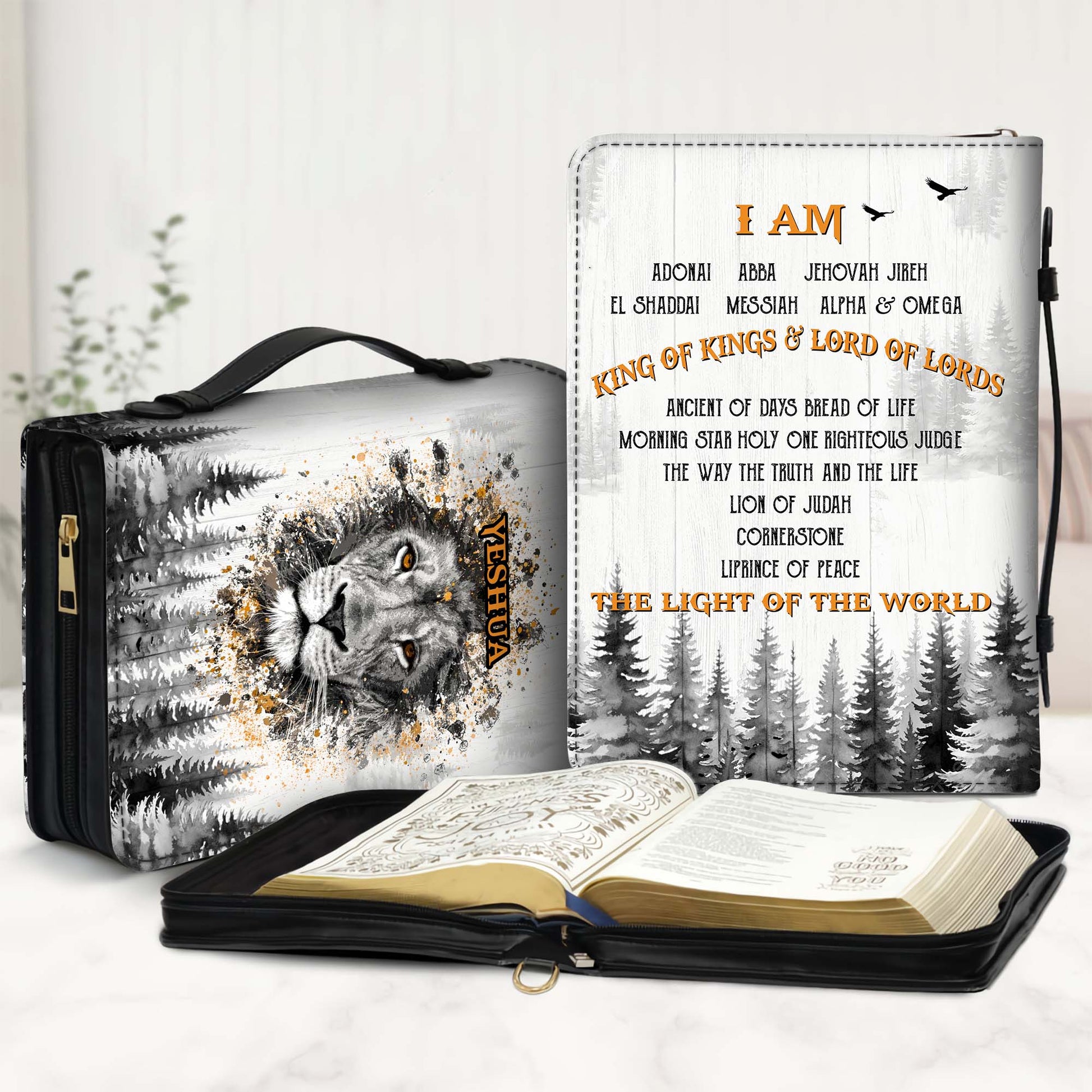 Protect your Holy Bible in style with our Yeshua Lion of Judah Leather Bible Cover, beautifully designed for faithful believers who want both durability and inspiration. The front features a powerful Lion of Judah artwork with the name YESHUA, symbolizing strength, courage, and divine authority. On the back, meaningful Biblical titles of Christ such as I AM, King of Kings & Lord of Lords, The Light of the World, Alpha & Omega, and many more are carefully printed to remind you of His greatness every day.