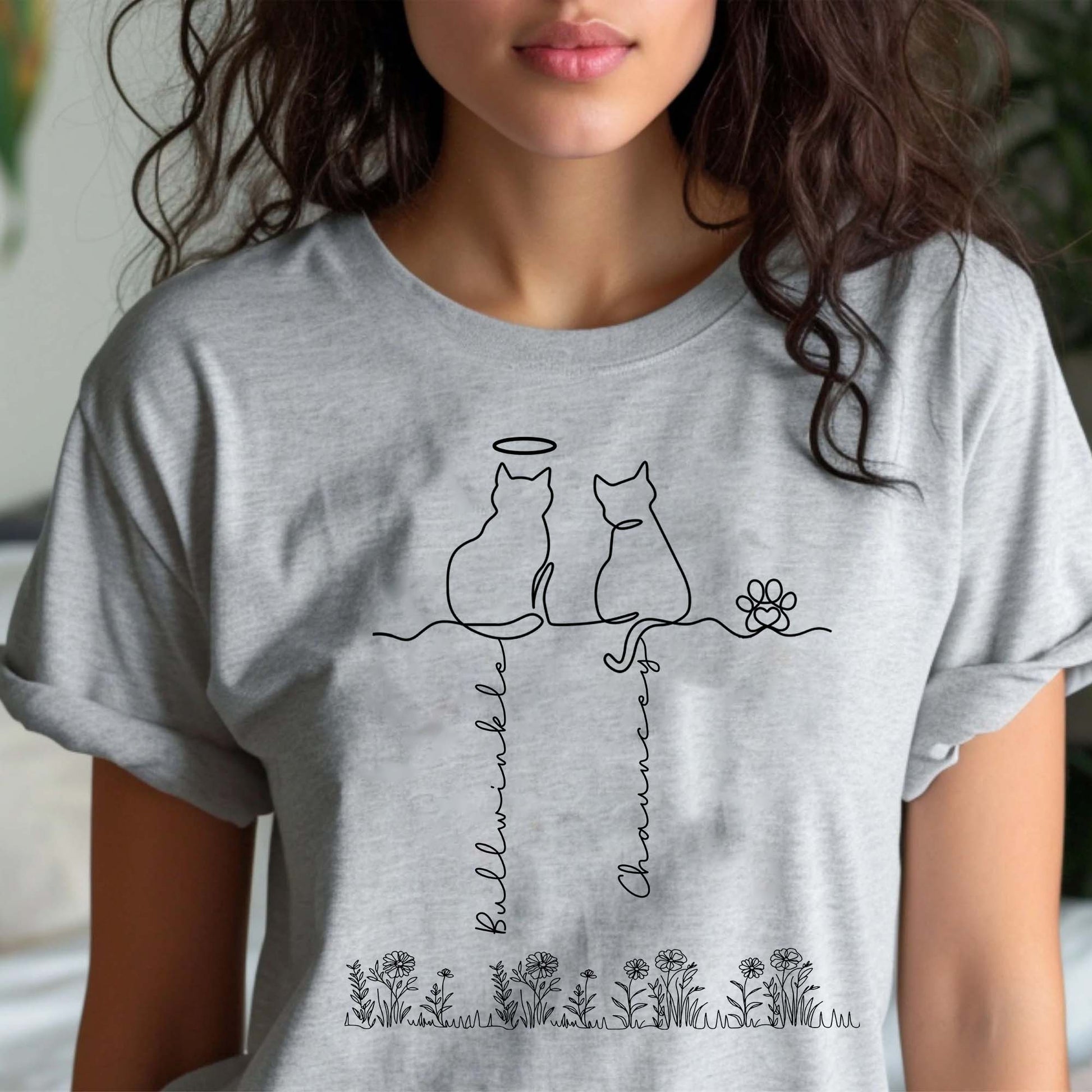 You can fully customize the number of cats and add their names to make the design uniquely yours. From including a halo to remember a special cat in heaven, to adding playful tails and flower accents, each detail is crafted to tell your personal story. Made from soft, high-quality fabric, this T-shirt offers ultimate comfort and breathability for everyday wear. It also makes a thoughtful gift for any cat mom, cat dad, or animal lover in your life who wants to show off their feline family in the most adorable and stylish way.