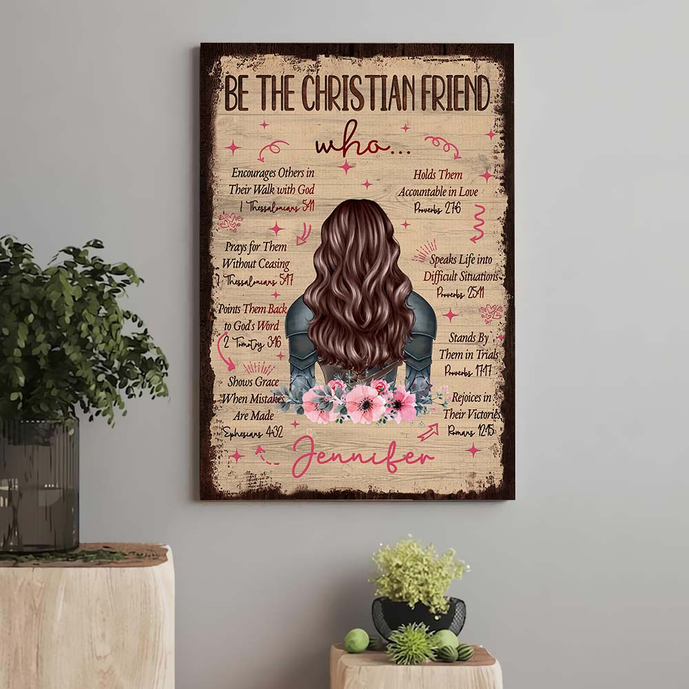 Transform your home with the Beautiful Warrior of God Poster Canvas, a powerful piece of Christian wall art that inspires strength, beauty, and faith. Featuring the uplifting quote: “Be the Christian Friend who...”, this design celebrates the image of a beautiful female warrior of God - a woman strong in spirit, graceful in heart, and unwavering in her walk with Christ. Surrounded by meaningful Bible verses, this poster is more than decoration; it’s a daily reminder to pray faithfully, encourage others, and live boldly as a true warrior of God. Perfect for living rooms, prayer spaces, or as a heartfelt Christian friend gift.