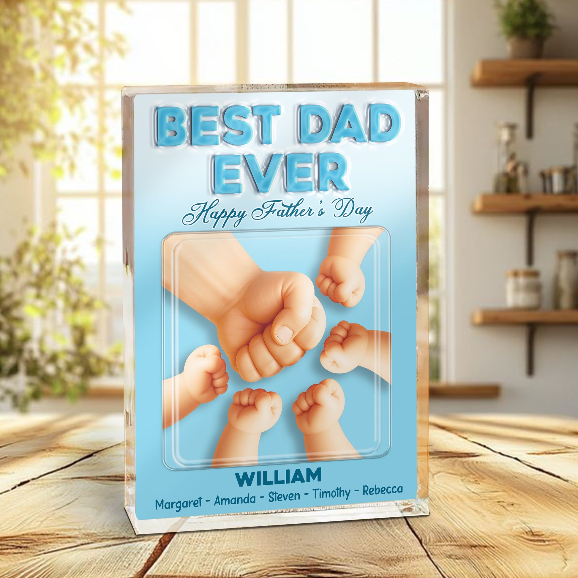 Personalized Dad and Kids Holding Hands Best Dad Ever, Happy Fathers Day Acrylic Block Plaque