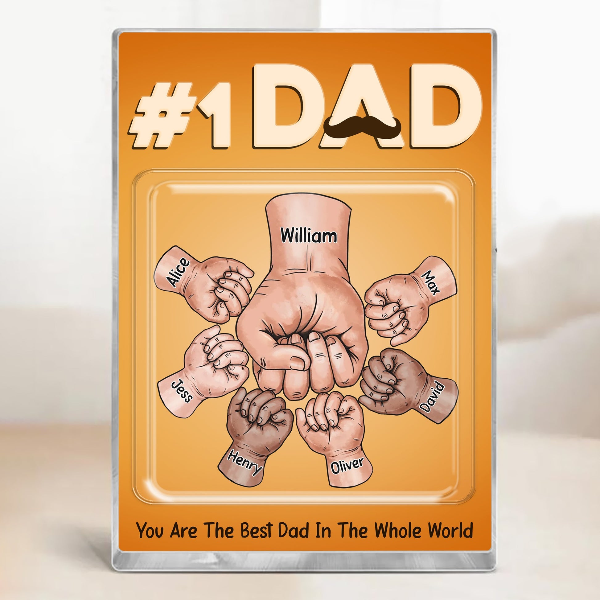 This unique keepsake is fully customizable, allowing you to adjust the number of children, personalize each name, and include a custom message at the bottom such as “You Are The Best Dad In The Whole World.” Crafted from high-quality acrylic, the plaque offers a clear, glossy finish that enhances its elegant appearance and durability. It’s a meaningful, lasting way to show Dad how much he means to his family, making it a truly unforgettable gift.