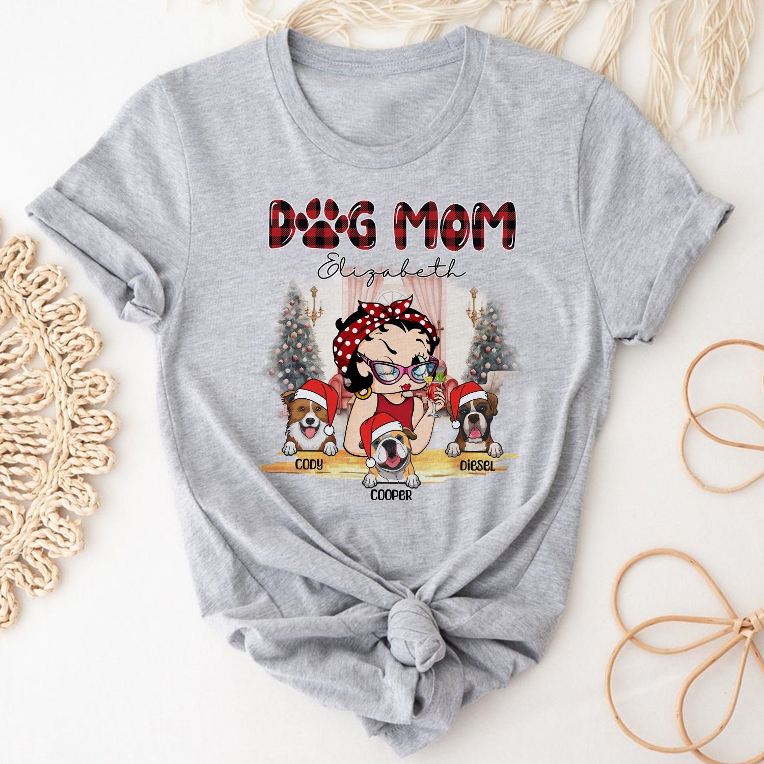 Personalized Dog Mom, Christmas Gift for Dog Mom Custom Girl Vintage with Dog T-Shirt, Dog Mom T-Shirt, Betty Boop Inspired Shirt, Unique Christmas Gift for Dog Moms, Dog Mom Christmas Shirt