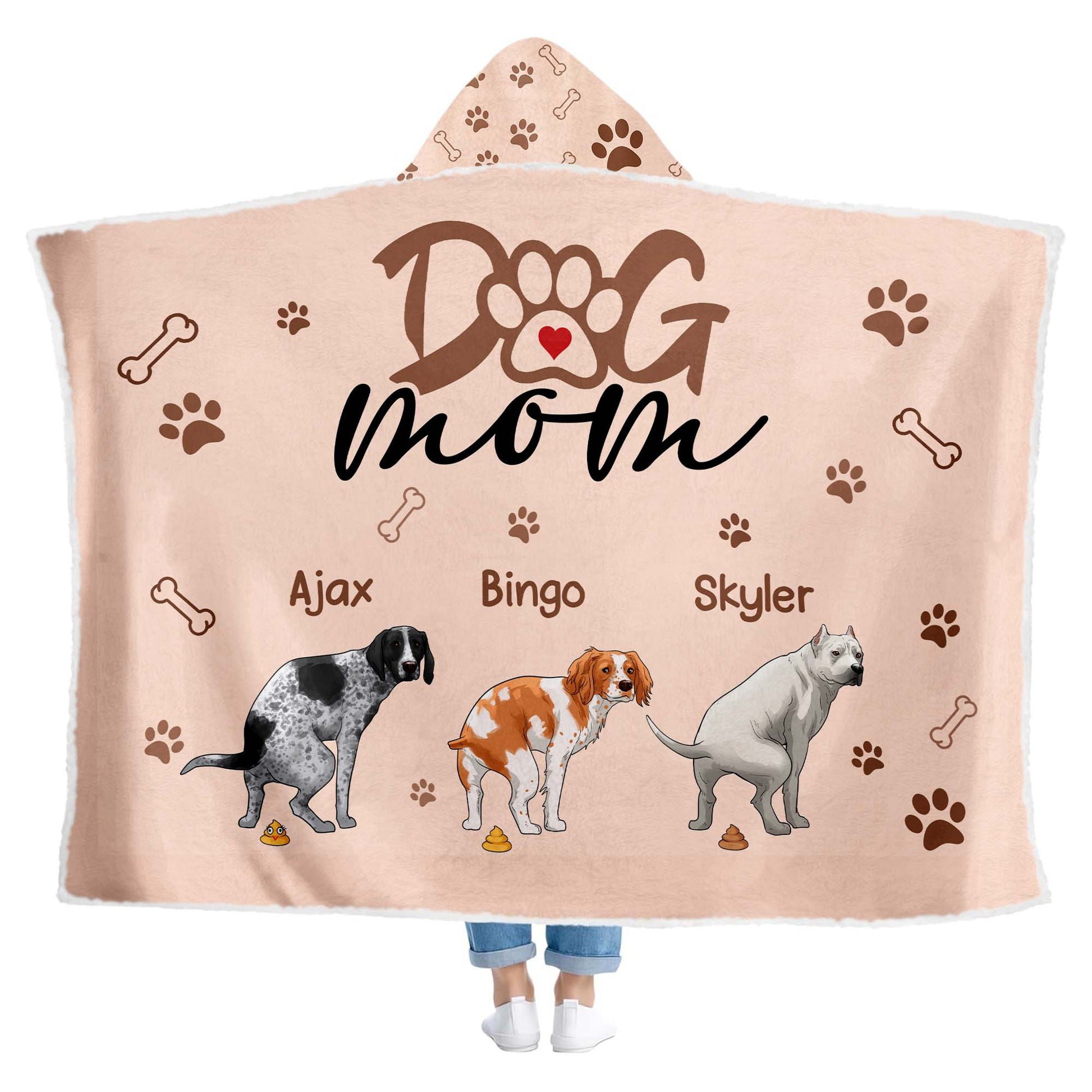 Personalized Dog Mom Gift, Funny Pooping Dog Blanket for Dog Lovers Hooded Blanket