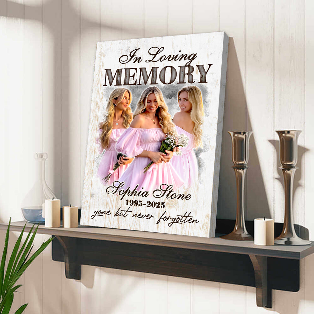 Personalized Memorial Photo In Loving Memory Gone but Never Forgotten Poster Canvas