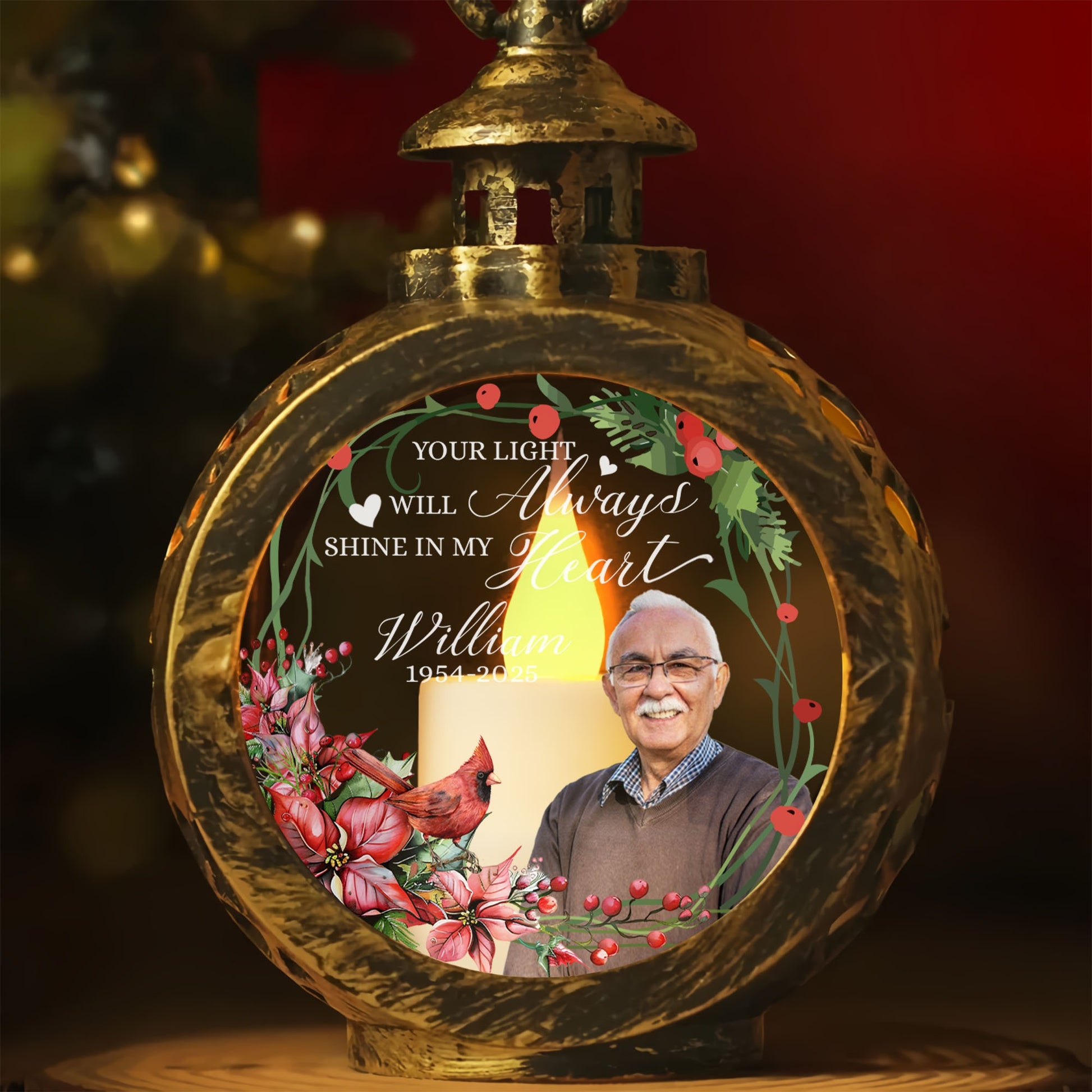 Personalized Memorial Photo Your Light Will Always Shine In My Heart Candlelight Lantern Ornament