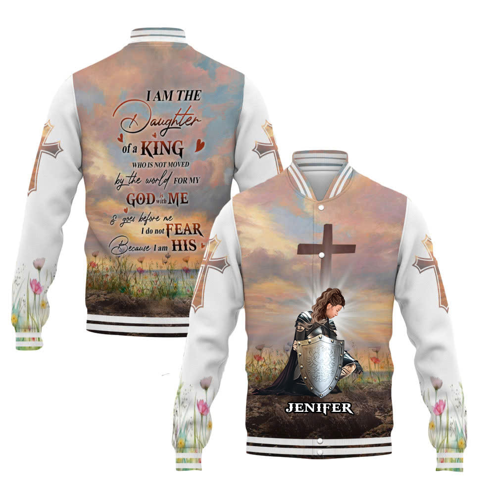 Personalized Woman Warrior of God I Am the Daughter of a King Varsity Jacket