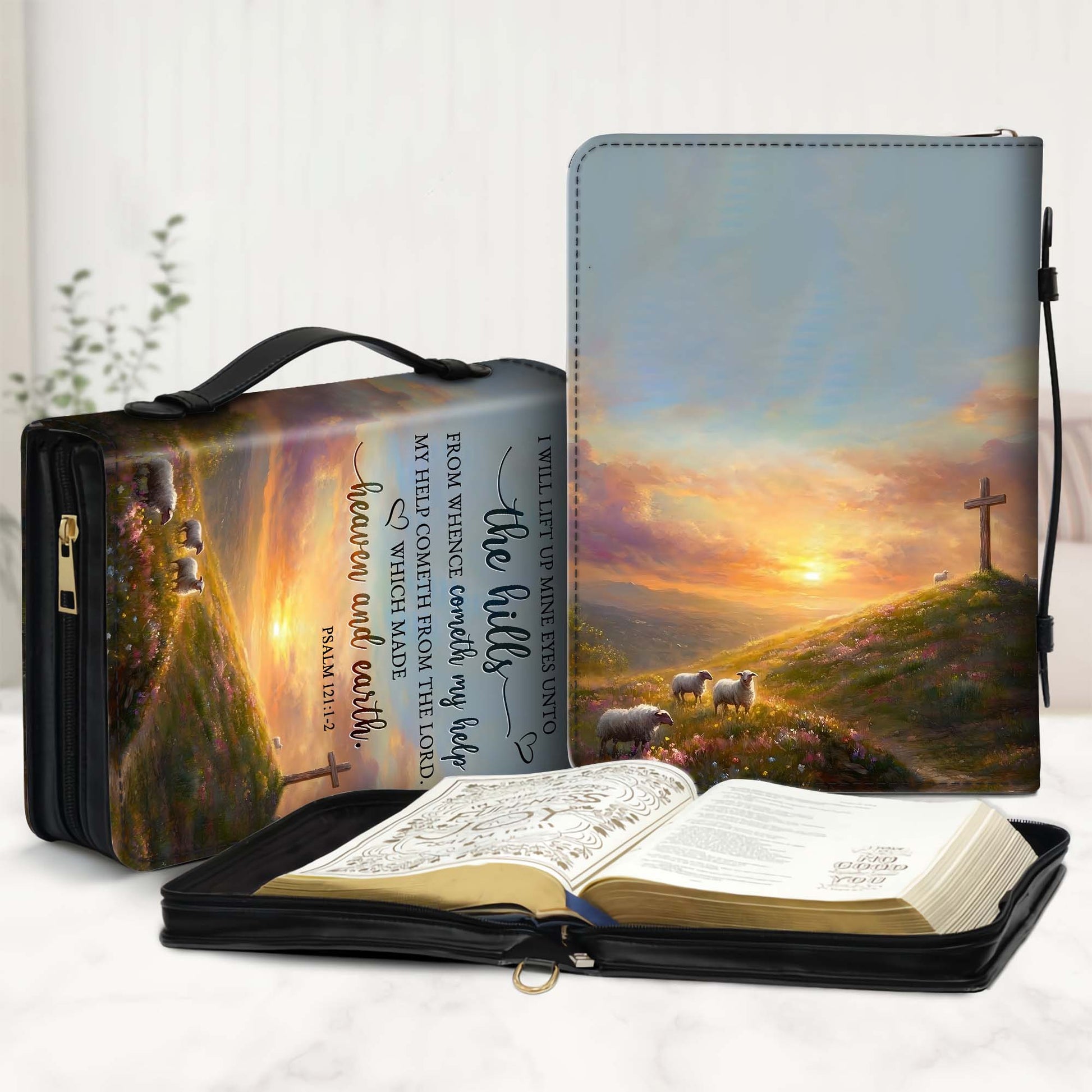 Carry your Bible with confidence and faith using this Christian Leather Bible Cover inspired by Psalm 121:1-2: “I will lift up mine eyes unto the hills, from whence cometh my help. My help cometh from the Lord, which made heaven and earth.”