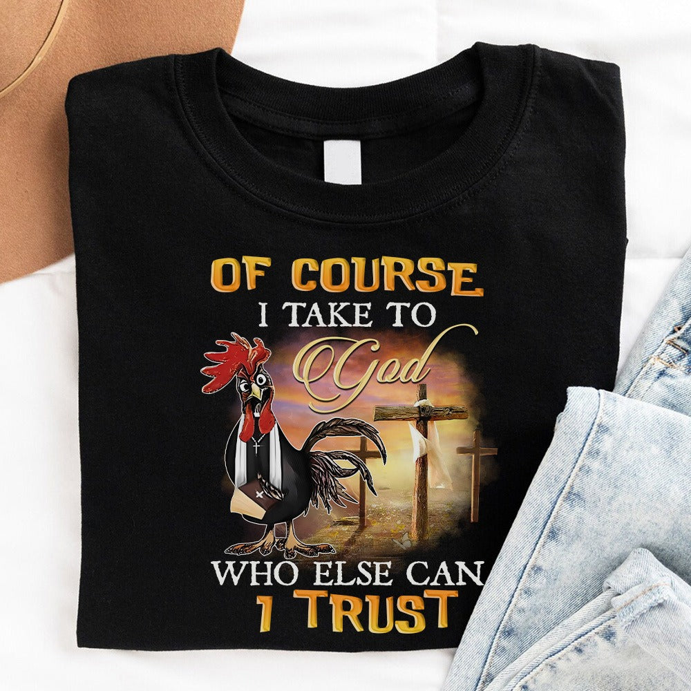 Rooster Of Course I Talk To God Who Else Can I Trust T-Shirt, Funny Chicken Shirt, Funny Rooster Shirt, Trust in God Tee, Spiritual Trust T-Shirt