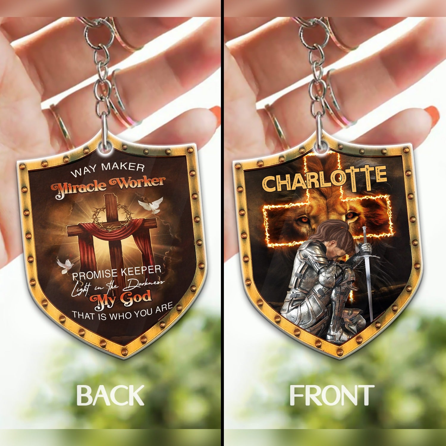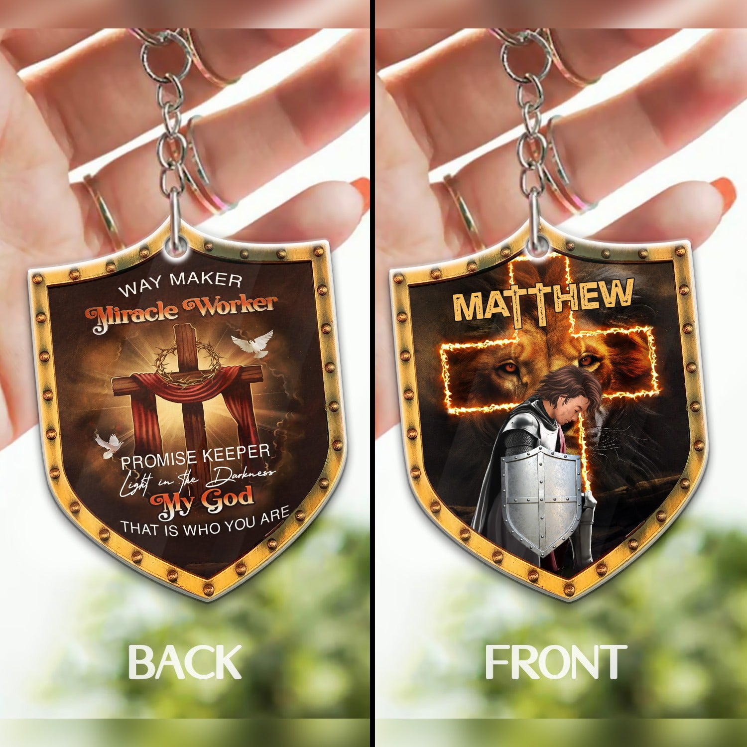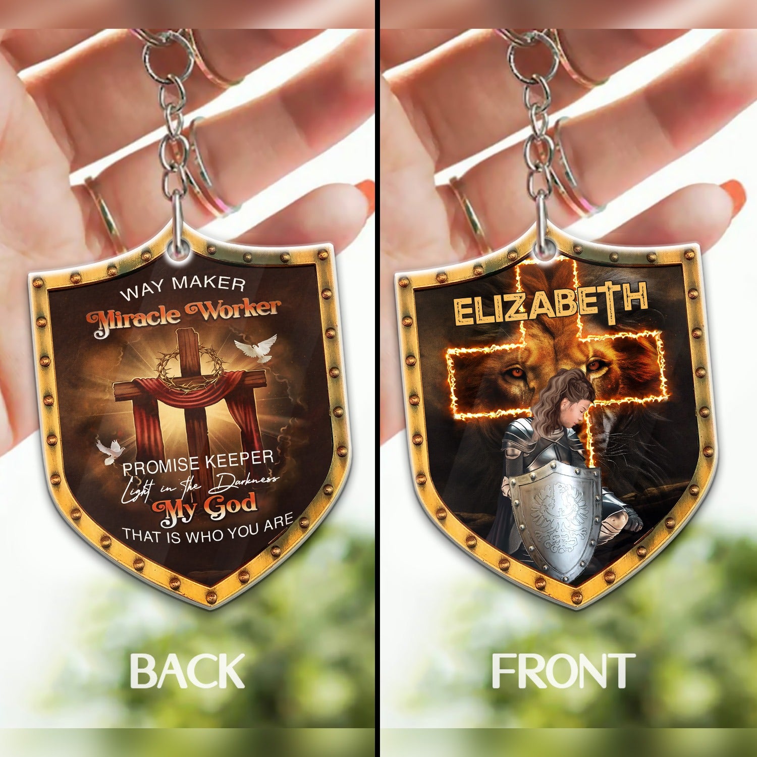 Way Maker Miracle Worker- Custom Warrior Of God- Personalized Christian Shield Acrylic Keychain